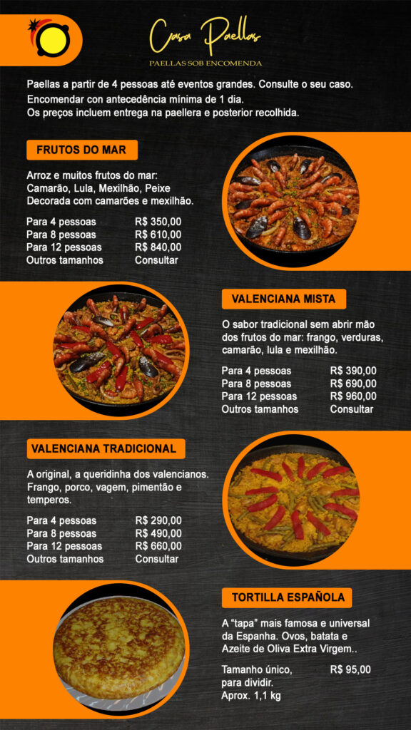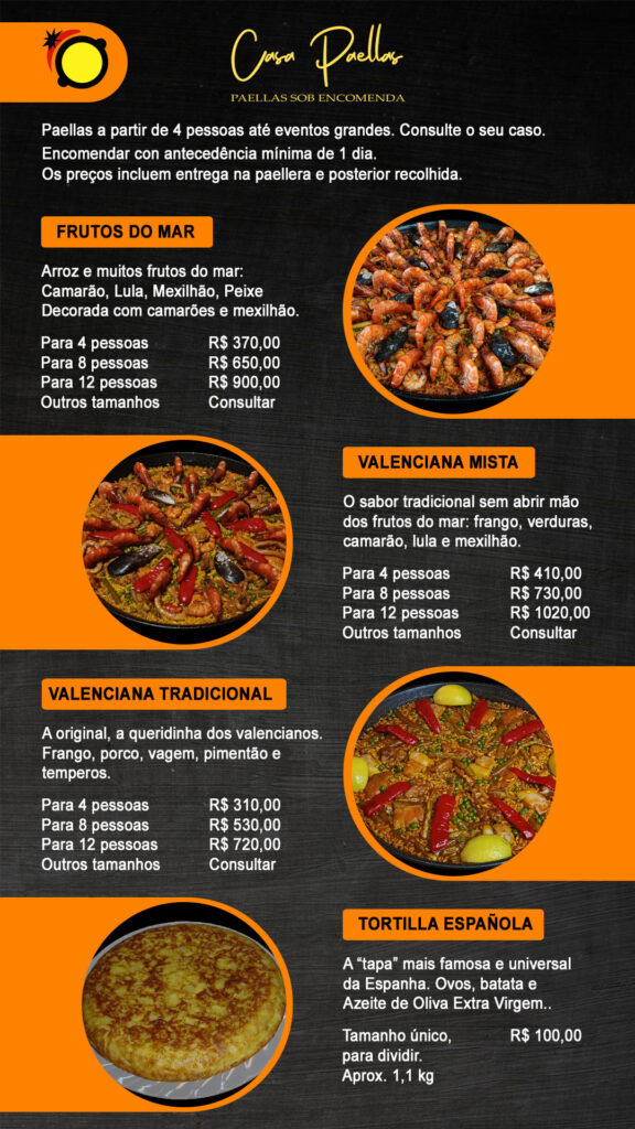 Cardápio de Casa Paellas Confira as fotos dos nossos pratos na ficha Google, clicando no link a seguir: Avaliação Google 4.9